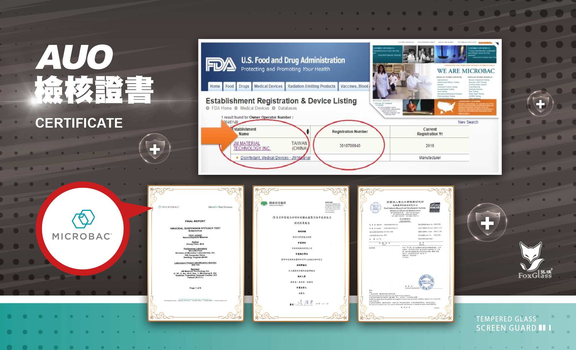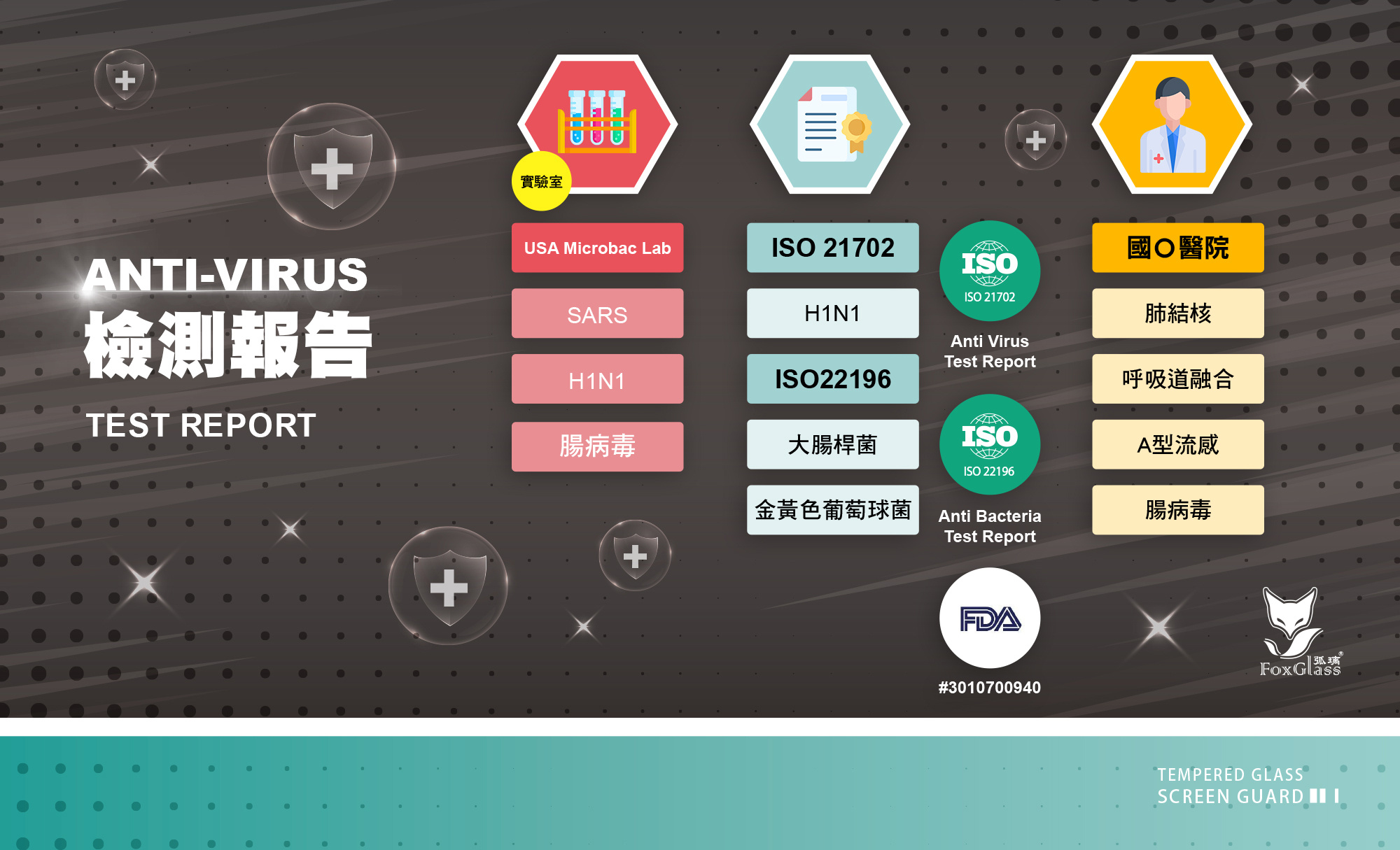 (利科光學股份有限公司)市面上唯一有附上多項檢測數據報告及清楚標明製造廠之抗菌抗病毒保護貼產品。